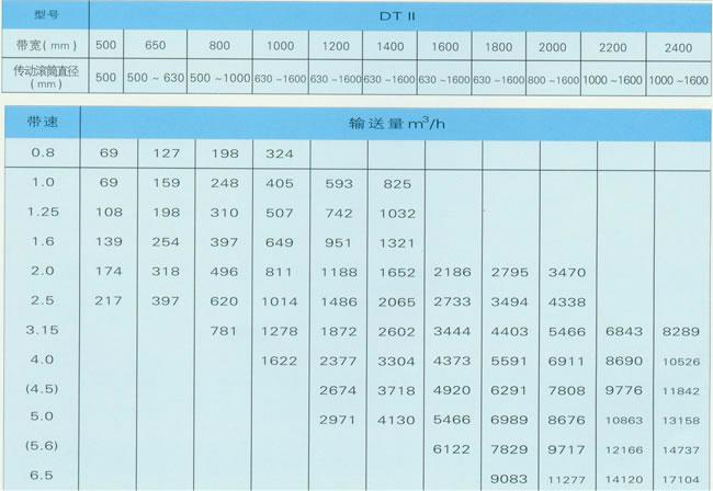 主參數(shù)、傳動功率和張力的計算方法均采用ISO國際標準,產(chǎn)品標準符合GBl0595《帶式輸送機技術(shù)條件》。主要參數(shù)見表。