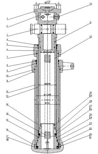 雙伸縮單體液壓支柱由1. 鉸接頂蓋 2.內(nèi)接柱頭 3.三用閥 4.防塵圈 5.導(dǎo)向環(huán) 6.中缸帽      7.連接鋼絲 8.防塵圈 9.導(dǎo)向環(huán) 10連接鋼絲 11手把體 12.外缸 13.中缸 14.活塞 15.活塞       16.底座 17.擋圈 18.O形圈 19.復(fù)位彈簧 20.Y形圈 21.擋圈 22.導(dǎo)向環(huán) 23.連接鋼絲24.O形圈    25.擋圈 26.Y形圈 27.擋圈 28.導(dǎo)向環(huán) 29.擋圈 30.O形圈 31.連接鋼絲四 32.活柱 33.彈性圓柱銷零部件組成。
